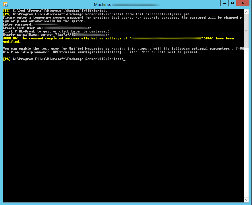 Bude za potřebí spustit skript new-TestCasConnectivityUser.ps1.